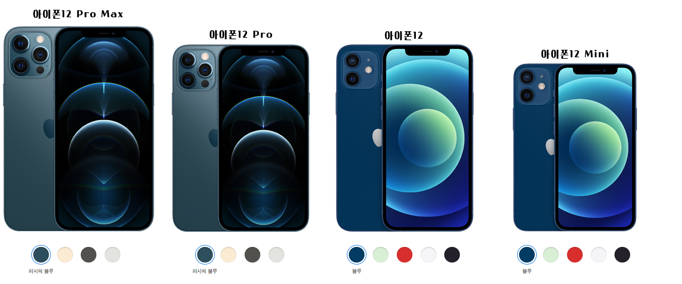 색상 또한 아이폰12와 아이폰12pro 계열에 따라 다르게 나오는데요.