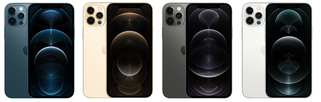 다음으로 아이폰12프로와 아이폰12프로맥스 같은 경우는 퍼시픽블루, 골드, 그래파이트, 실버로 출시됩니다.